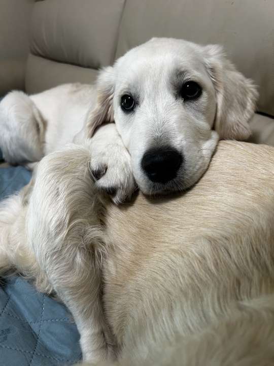 イギリス系のゴールデンは、特に落ち着きがあり、穏やかで優しい性格が魅力です。毛色は少しクリームがかった柔らかな色合いの子が多く、全体的に落ち着いた印象を持っています🍃